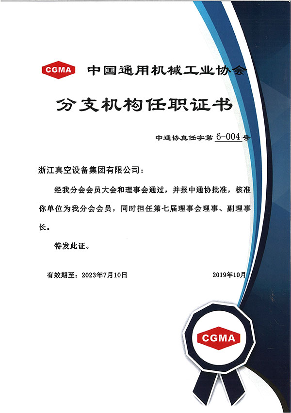 中國通用機(jī)械工業(yè)協(xié)會分支機(jī)構(gòu)任職證書
